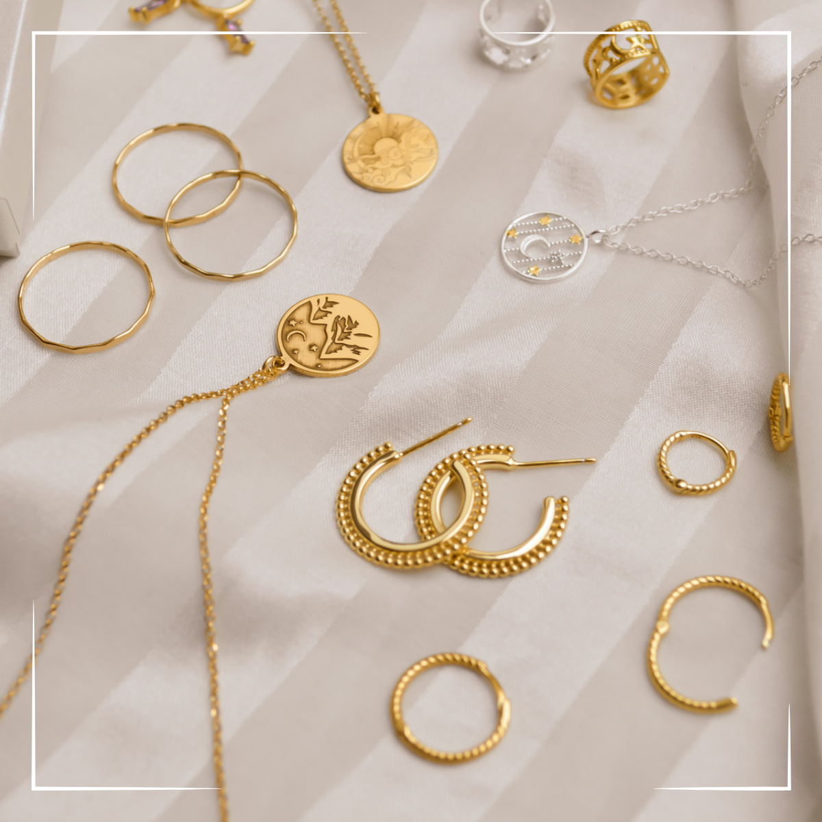 Elegante Designs aus hochwertigen Materialien wie 925 Sterlingsilber, Gold & Edelstahl.